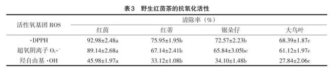 上述研究进一步测试了相同质量凤凰单丛茶汤的总抗氧化能力及抗菌活性,结果显示红茵茶对DPPH、超氧阴离子、羟自由基的清除率均最优。