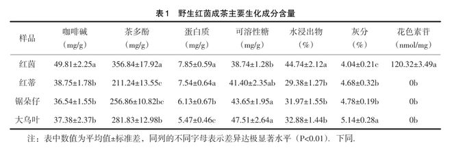 广东省韩山师范学院食品工程与生物科技学院的研究人员,曾以纯野生红茵茶、红蒂、锯朵仔、大乌叶为样品,对比测试了主要生化成分含量的差异。